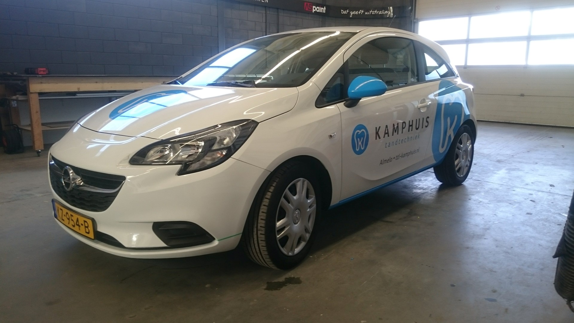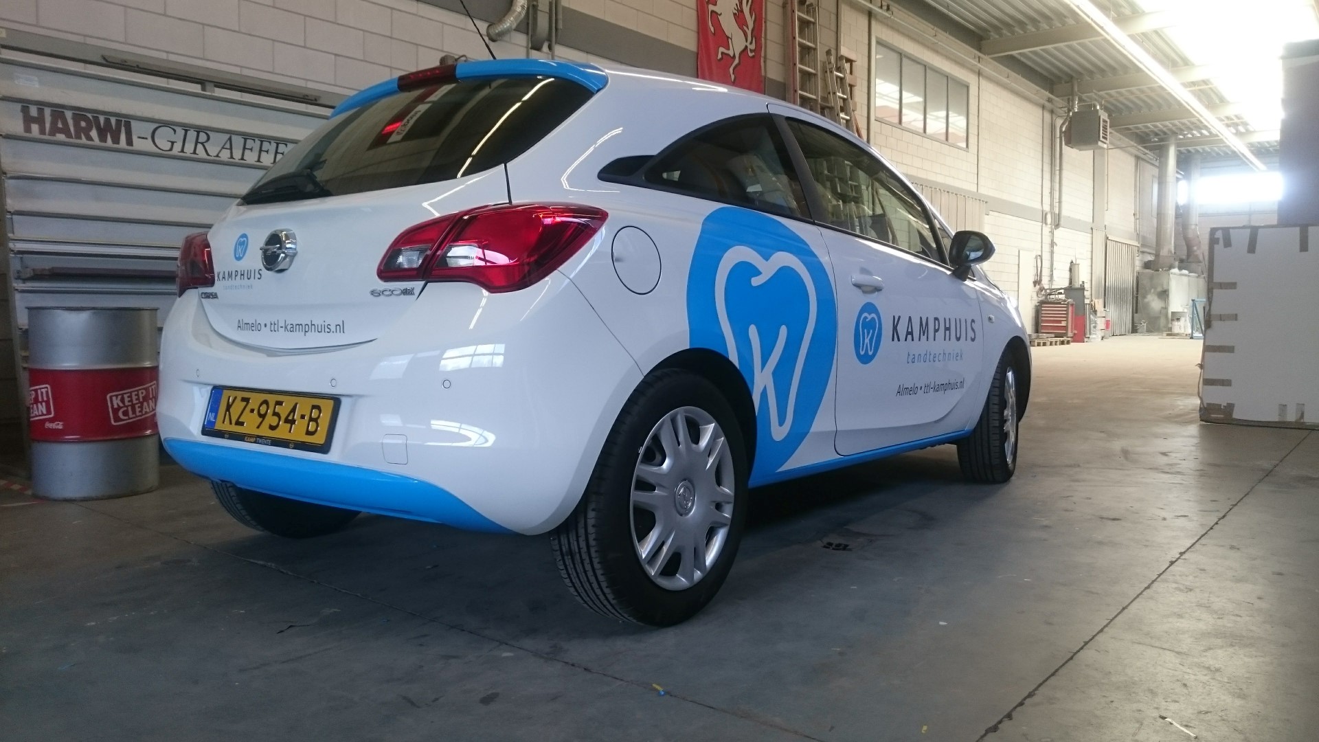 Voor Kamphuis Tandtechniek hebben wij naast het logo-ontwerp ook de autobelettering verzorgd. De spiegels en bumpers zijn volledig voorzien van een carwrap.