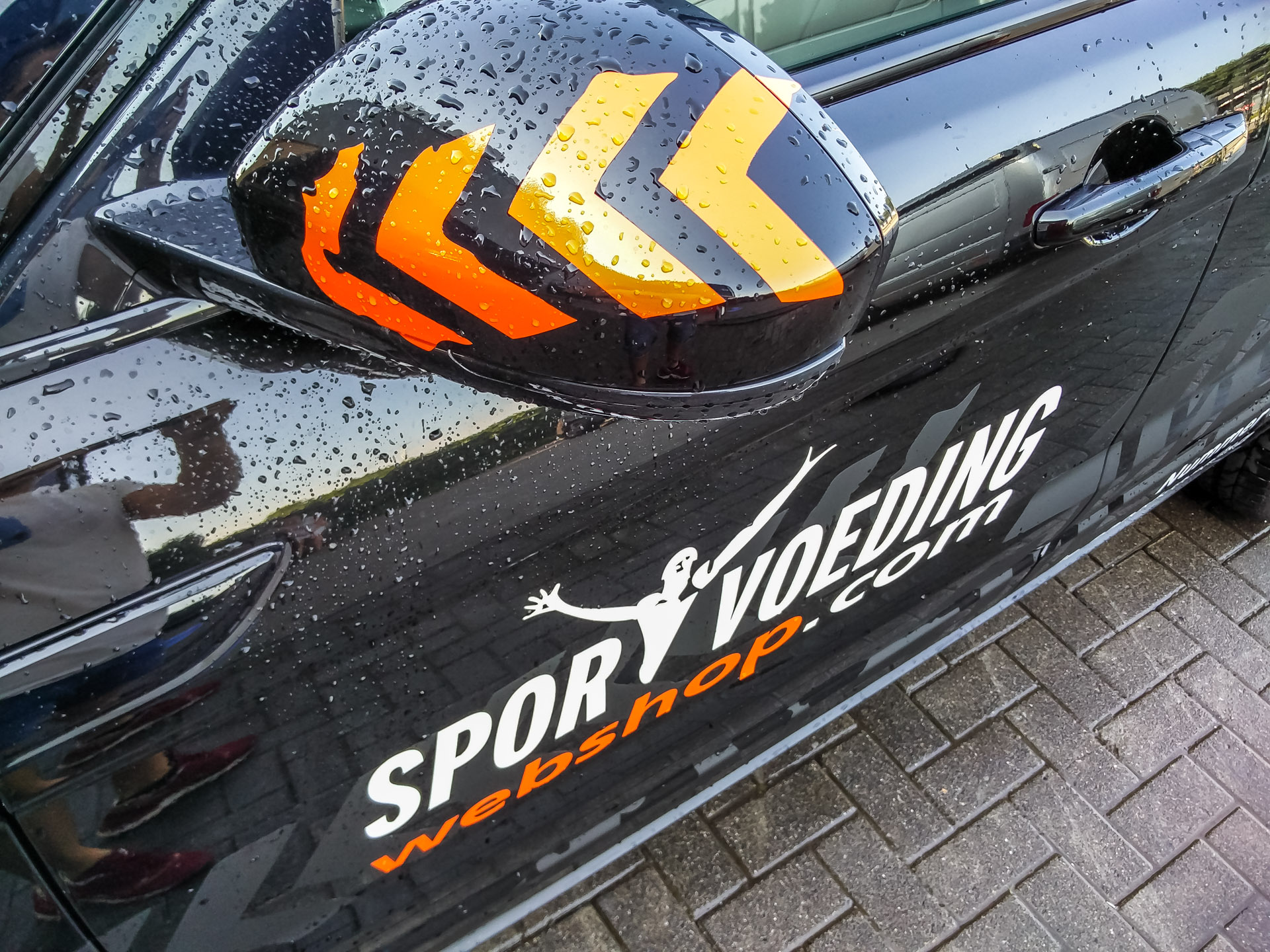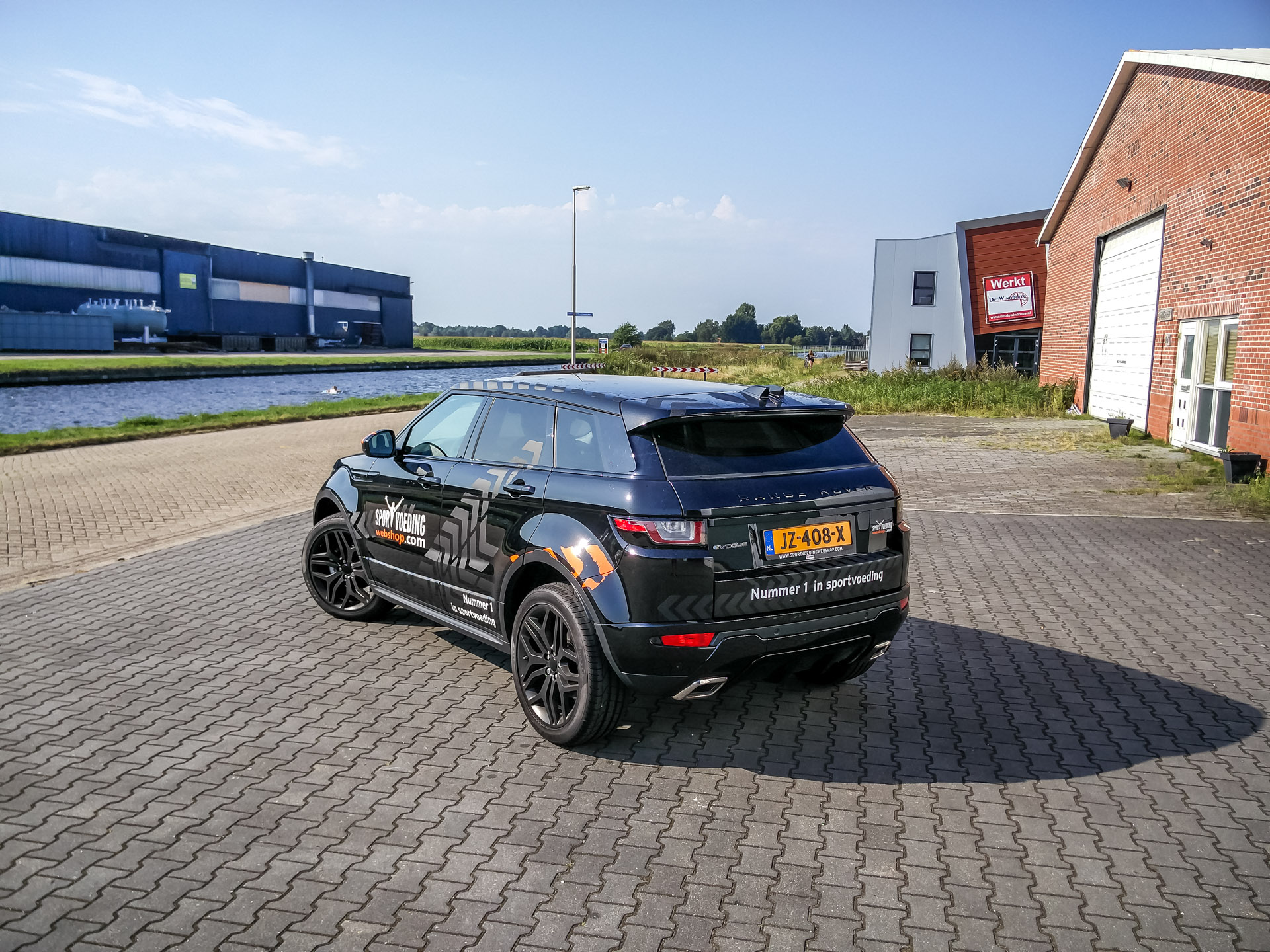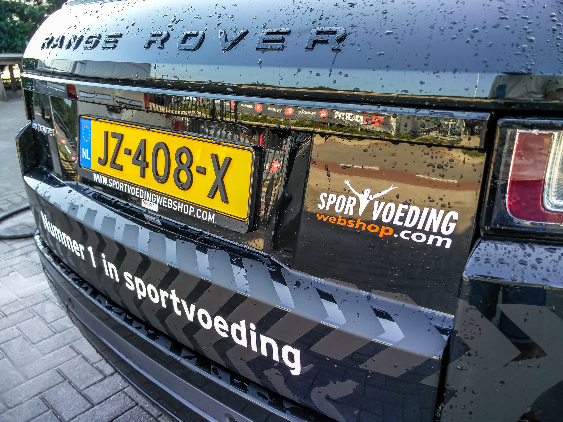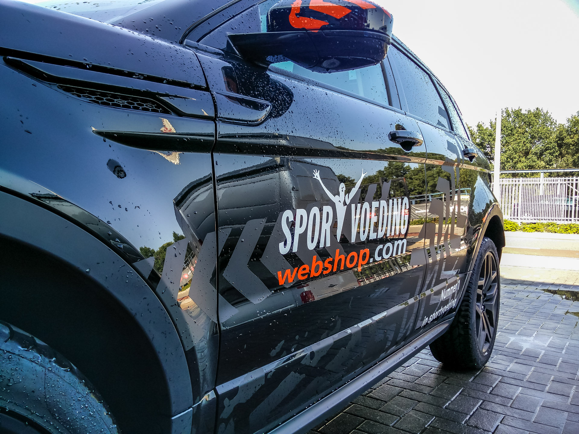 Voor Sportvoedingwebshop.com hebben wij de autoreclame op de Range Rover Evoque verzorgd. Uiteraard geheel volgens huisstijl; matzwarte striping in combinatie met belettering in glansfolies.