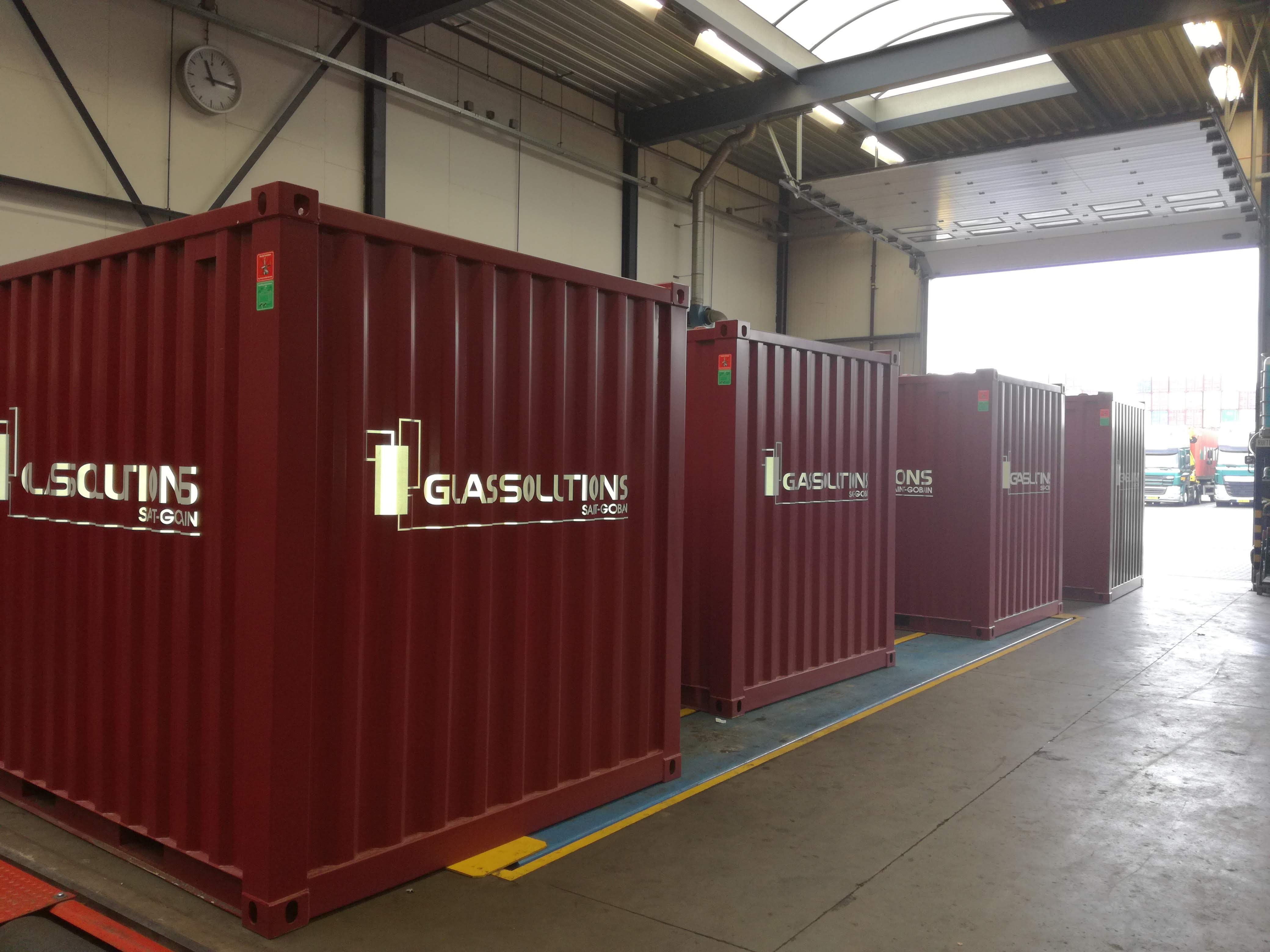 In opdracht van Combi Terminal Twente hebben wij 80 zeecontainers van Glassolutions (onderdeel van Saint Gobain) voorzien reflecterende reclame. Omdat de logo’s op de containers ook in het donker zichtbaar dienen te zijn, hebben wij gebruik gemaakte van reflecterende snijfolies. Op locatie in Hengelo hebben we in enkele dagen alle containers van belettering voorzien.