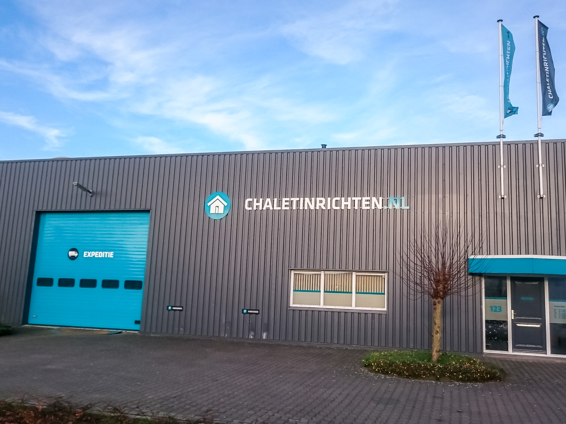 Gevelreclame voor nieuw onderkomen Chaletinrichten.nl