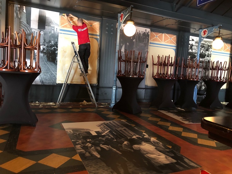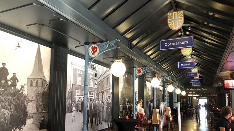 In de Hatrans Lounge van de Grolsch Veste hebben we in opdracht van FC Twente de indoor signing van de ruimte uitgevoerd. De ruimte staat volledig in het teken van de historie van de regio Twente. Wij hebben ca. 100m² aan geprinte panelen met van geschuimd PVC gemonteerd. Historische beelden van de regio sieren nu de wanden van de ruimte. Daarnaast zijn als details alle schilden en plaatsnaamborden van de steden, dorpen en gemeenten gemonteerd.