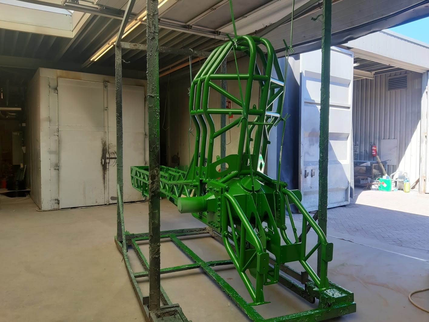 Voor Koebrugge Metaalbewerking hebben wij dit tractor pulling chassis mogen poedercoaten. Het chassis is eerst gestraald en vervolgens in een twee laags systeem gepoedercoat. Door te werken met primerlaag en een topcoat is het metaal beter bestand tegen invloeden van allerei weersomstandigheden en daarmee ook tegen corrosie.  Het chassis is gecoat in Ral 6003 Loofgroen.