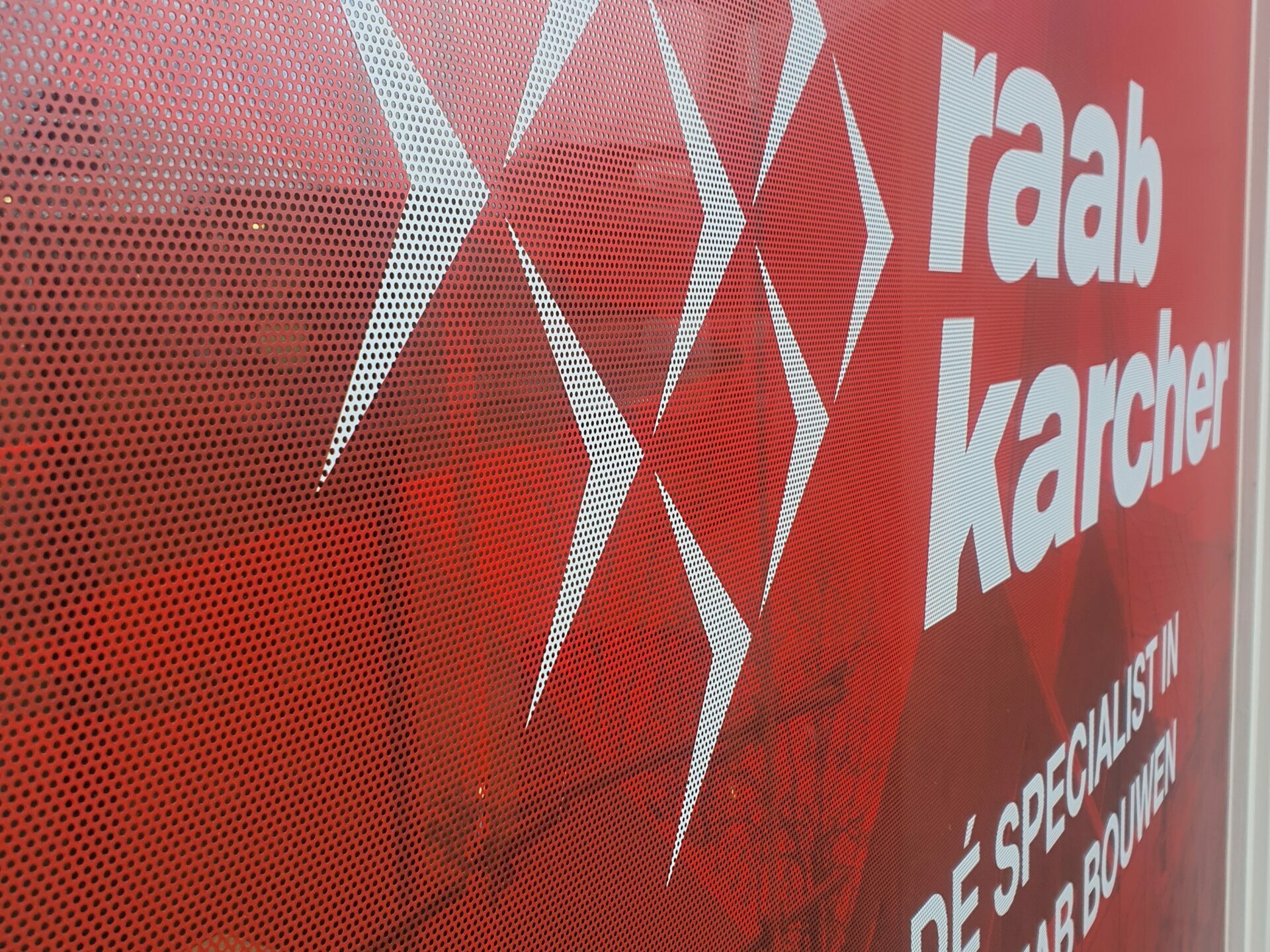 Voor het nieuwe pand ‘De Beukenhof’ van Raab Karcher hebben wij het aanbrengen van de raamfolie verzorgd. De frisse rode huisstijl is nu ook hier aan de buitenkant niet meer te missen. De ramen buiten zijn beplakt met geprinte Oneway vision folie. Dit zorgt ervoor dat je wel naar buiten kunt kijken maar niet naar binnen.