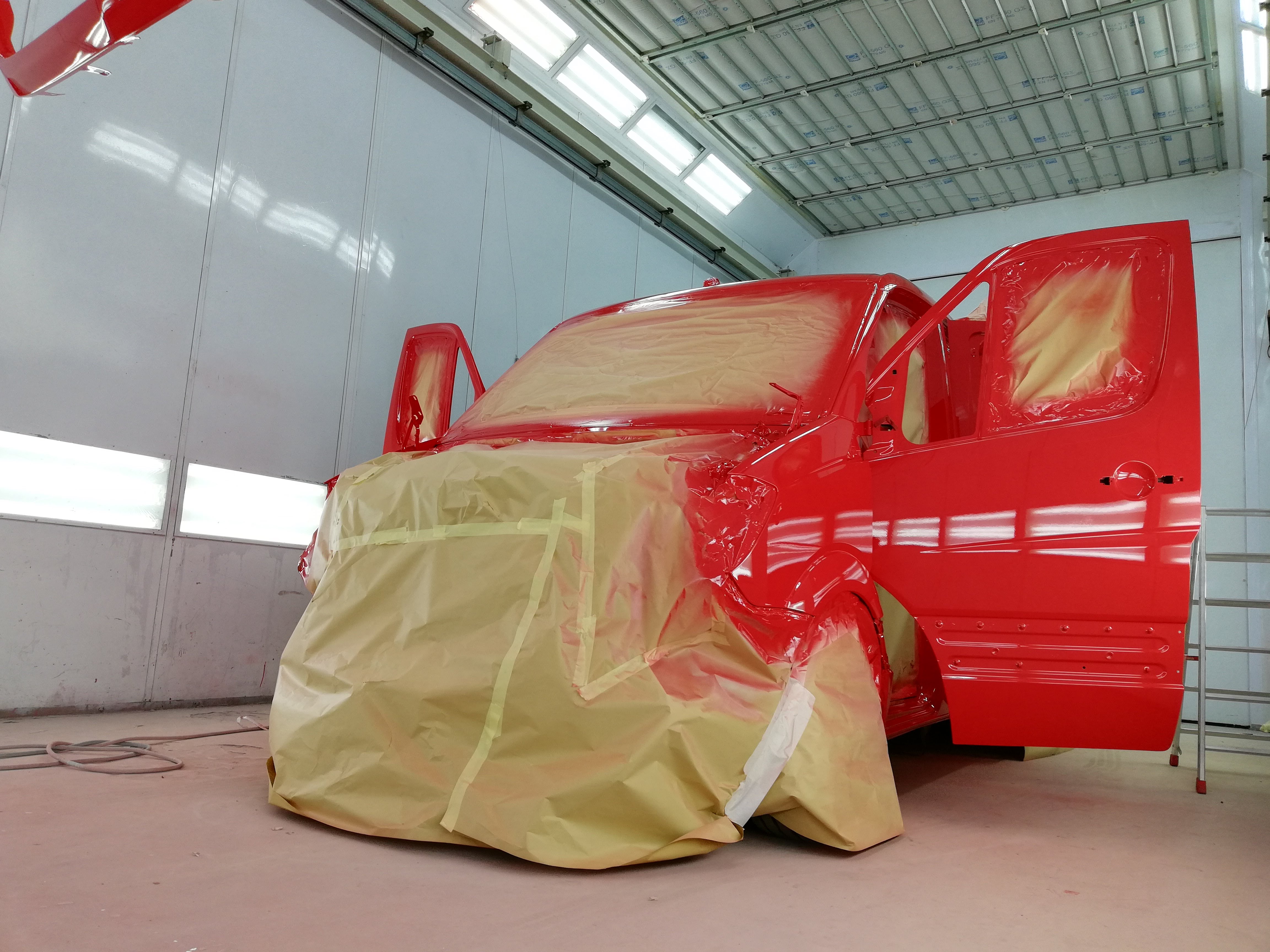 Voor Wetering Groep uit Den Ham hebben we deze cabine van deze Mercedes Sprinter bakwagen mogen spuiten in de gewenste huisstijlkleur. Eerst is de Mercedes Sprinter bakwagen gedemonteerd en vervolgens afgeplakt. De Mercedes Sprinter is gespoten in een hoogwaardige autolak.