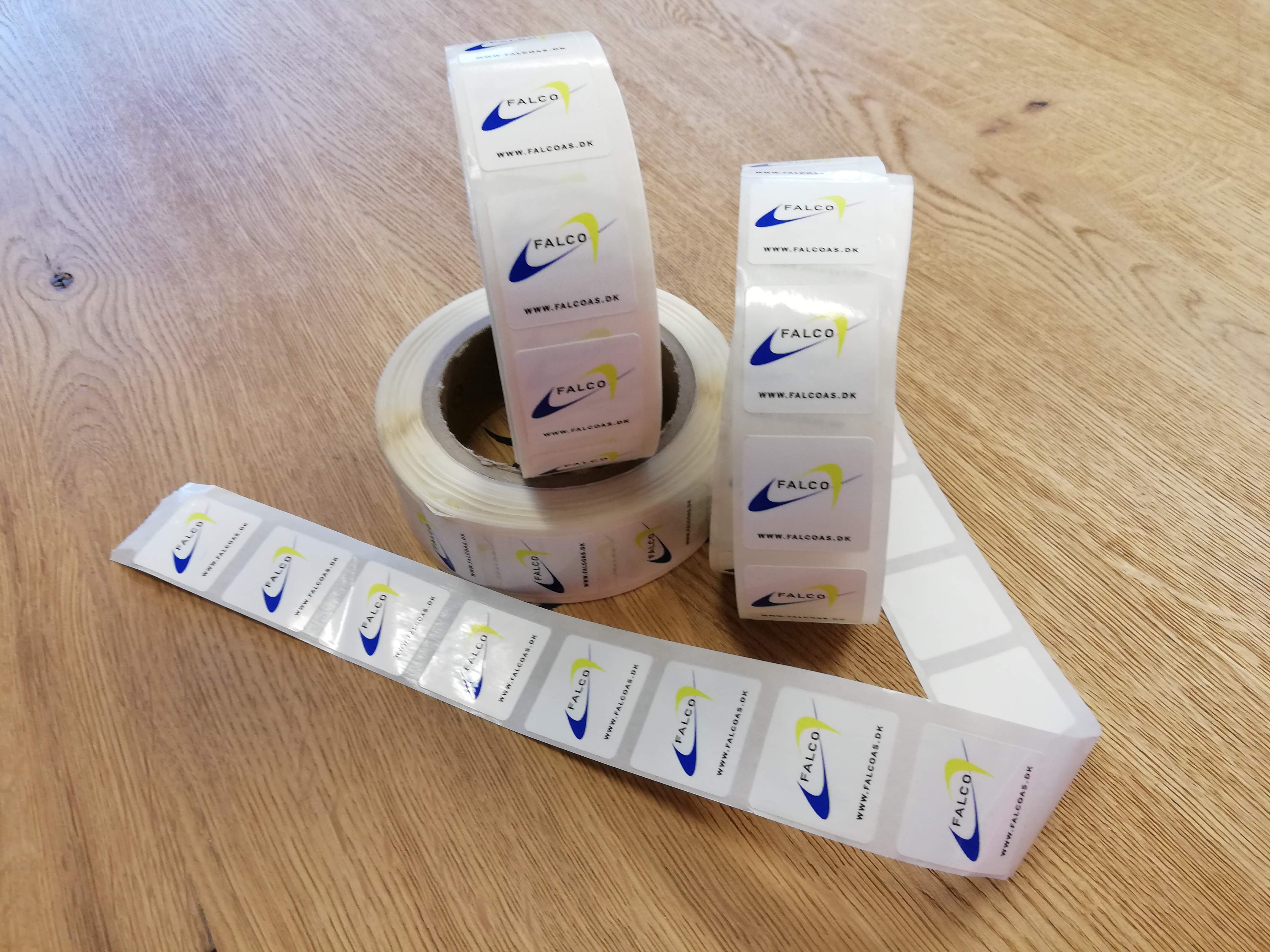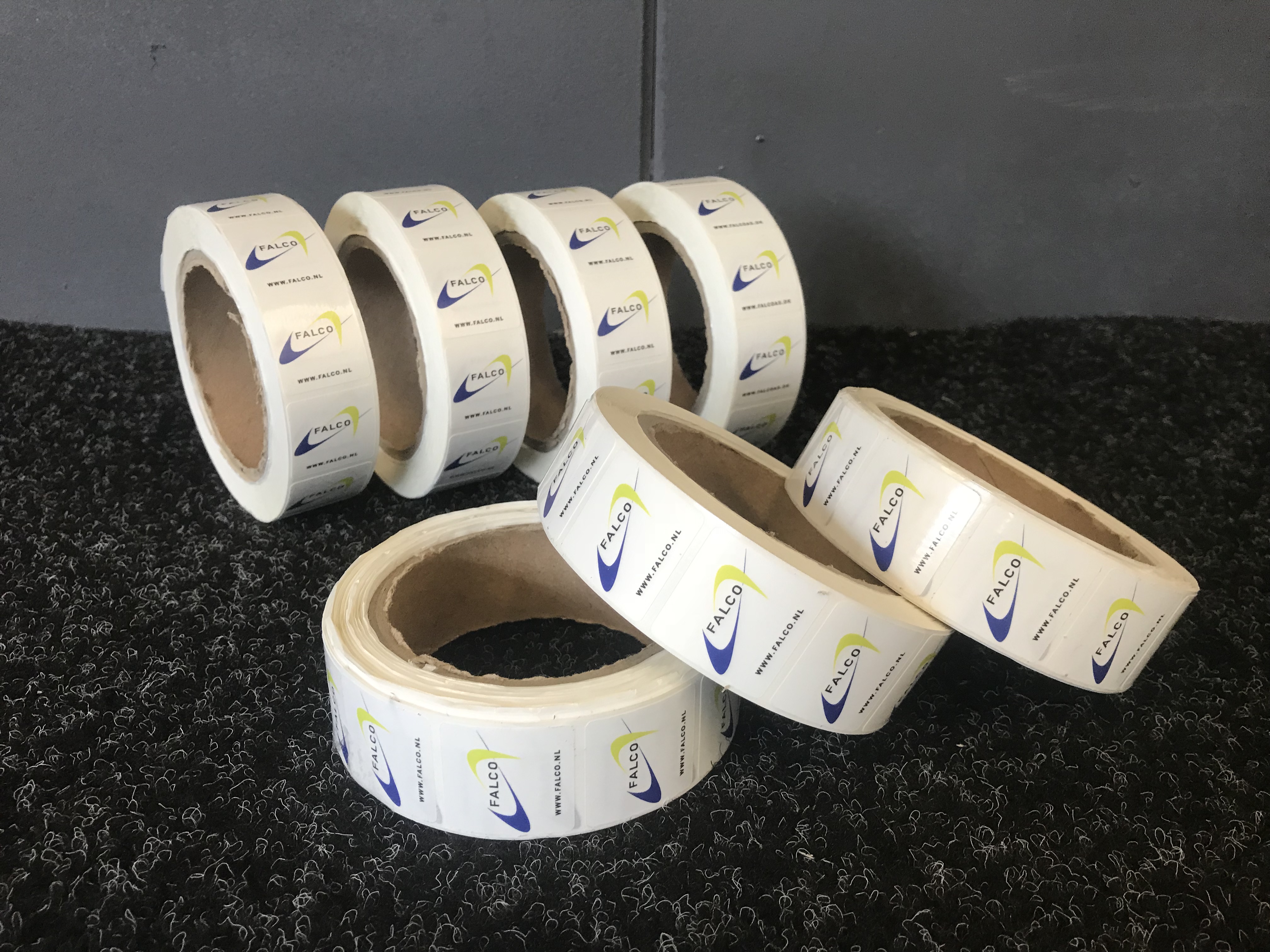Voor Falco leveren wij stickers op rol. Deze duurzame, geprinte logostickers met glossy look maken de producten van Falco herkenbaar.